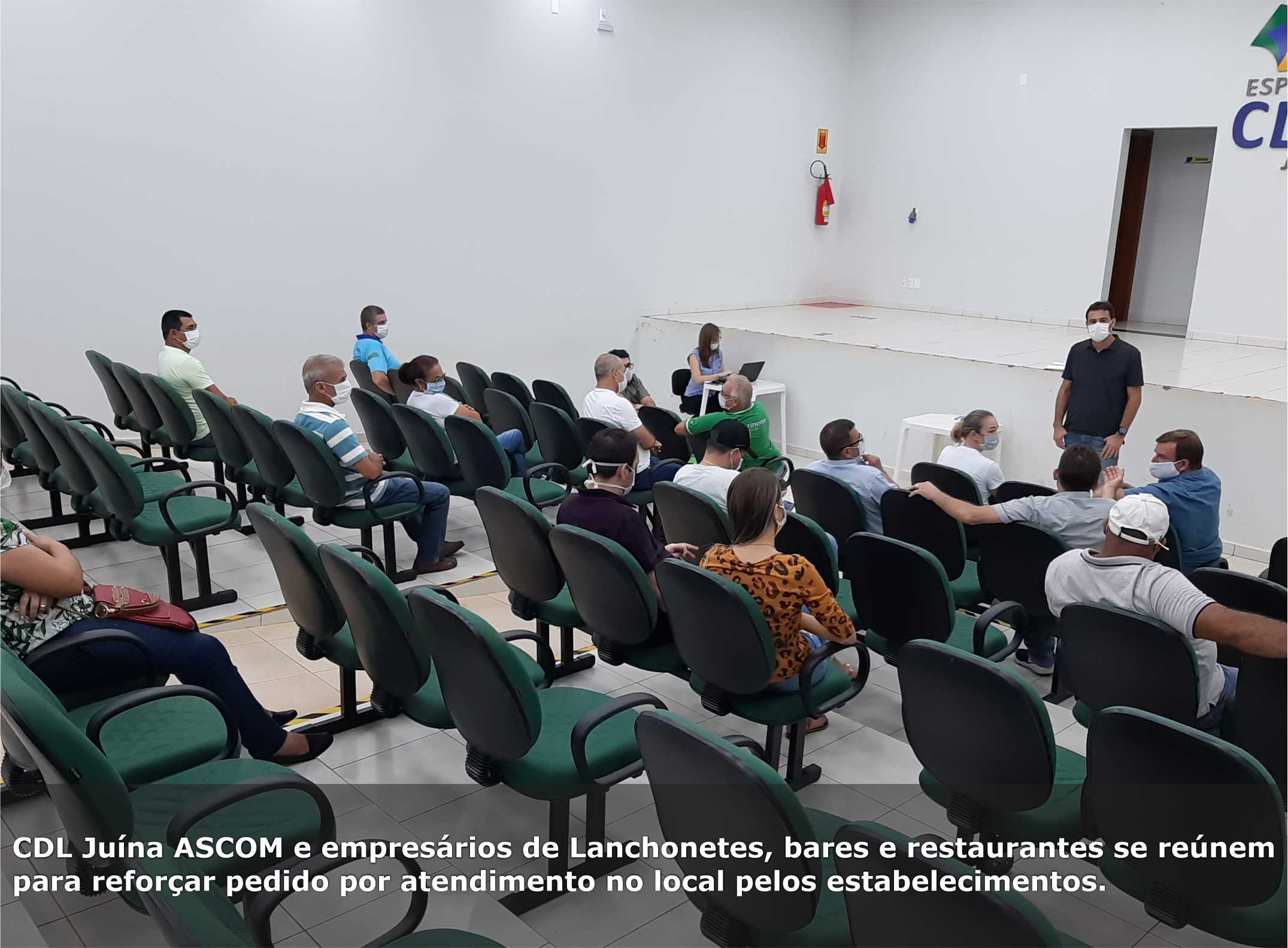 Diante da publicação do Novo Decreto Municipal 419/2020 que não contempla o consumo no local para lanchonetes, restaurantes, espetinho, bares e afins, os empresários dos segmentos convocaram uma reunião junto a CDL Juína ASCOM, onde foi elaborado um novo pedido de abertura total desses comércios e permissão para consumo no local por parte dos clientes.