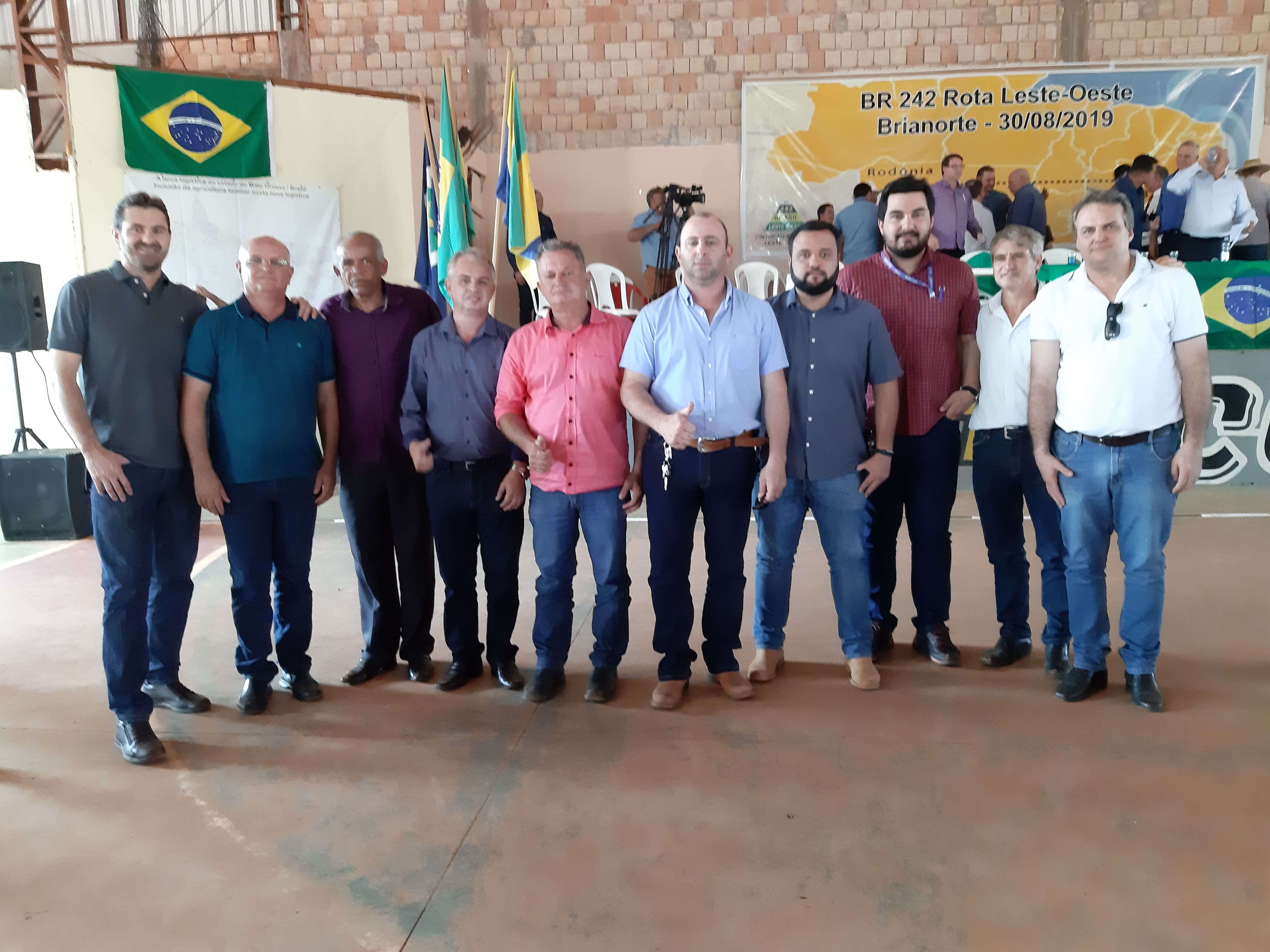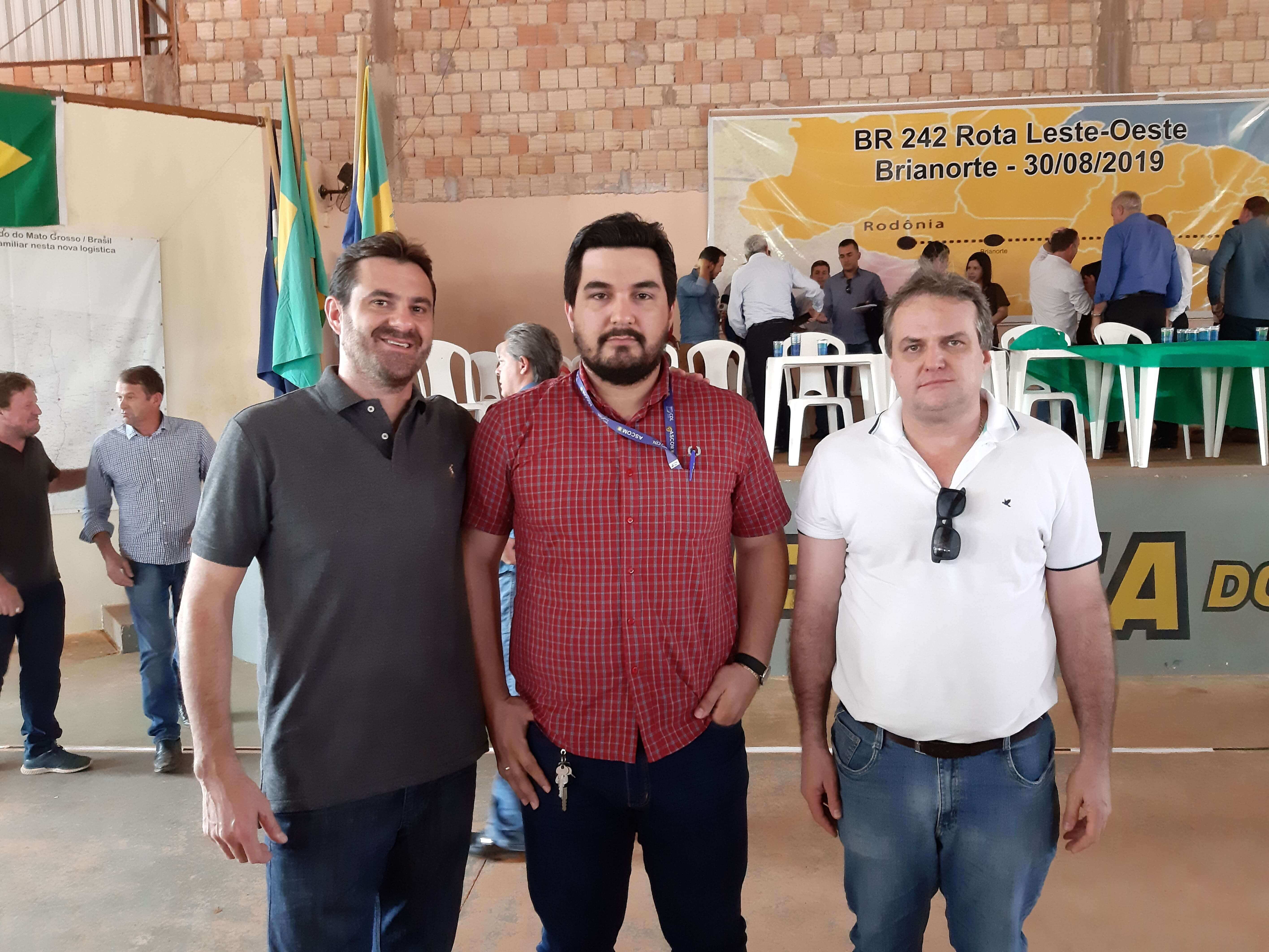 Uma comitiva de representantes do comércio de Juína através da CDL Juína/ASCOM, presidente Marcelo Pagnussat, produtores rurais, jornalistas, vereadores, prefeito e o vice de Juína, Altir Peruzzo e Luís Braz estiveram em Brianorte, distrito de Nova Maringá-MT, para participar da audiência pública que visa discutir a importância estratégica da conclusão da BR 242, importante rota para o escoamento de grãos do Brasil. A rodovia ligará Mato Grosso aos principais portos do Norte, como Miritituba (PA) e Itaqui (MA).