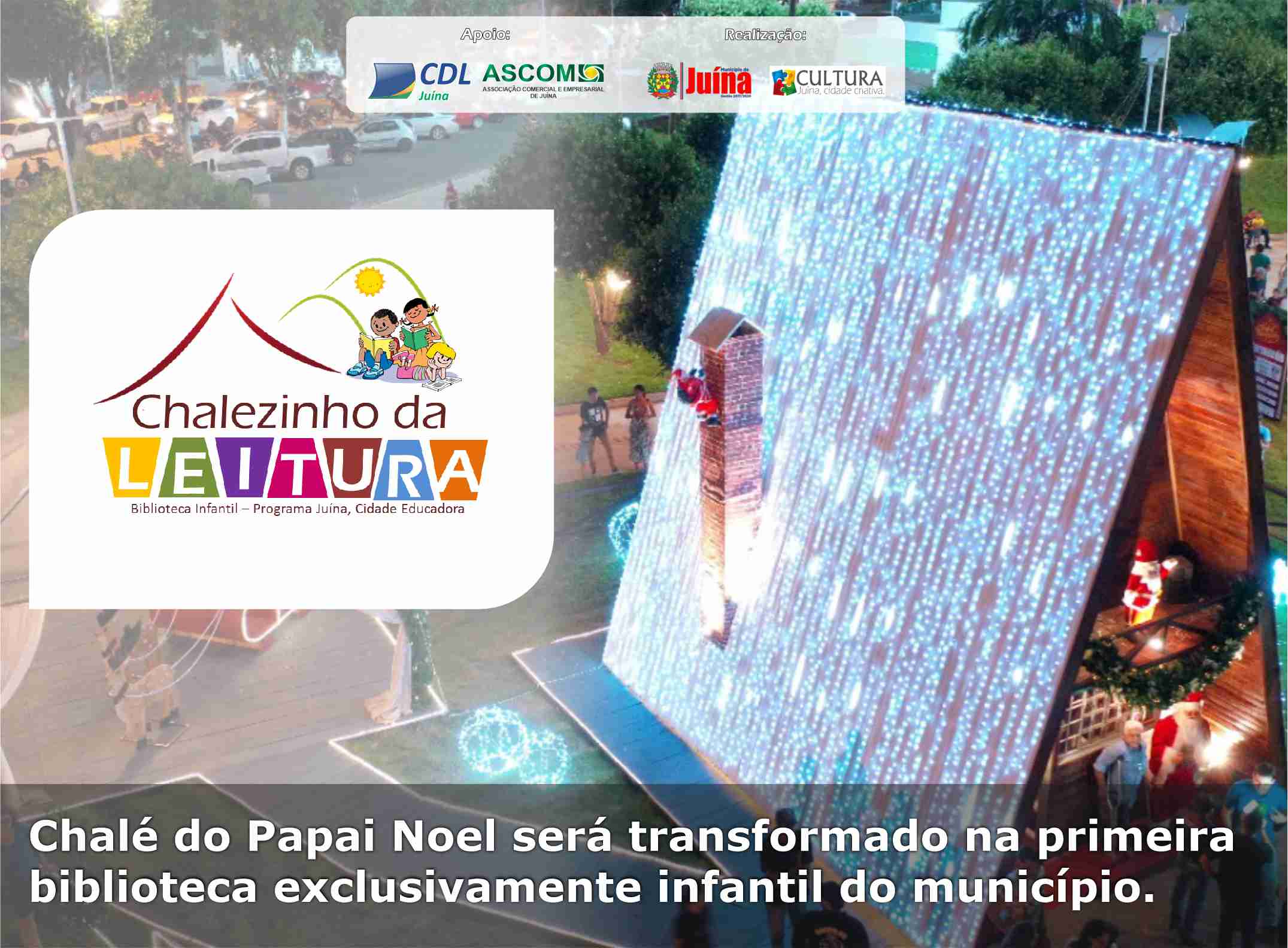 A Prefeitura de Juína, a ASCOM – Associação Comercial e a CDL – Câmara de Dirigentes Lojistas, que construíram o Chalé do Papai Noel na Praça da Bíblia e realizaram juntos o projeto Natal Iluminado em 2019, resolveram transformar o referido espaço na primeira biblioteca exclusivamente infantil do município. O projeto vai compor ao Programa Cidade Educadora executado pela Secretaria Municipal de Educação e Cultura.
