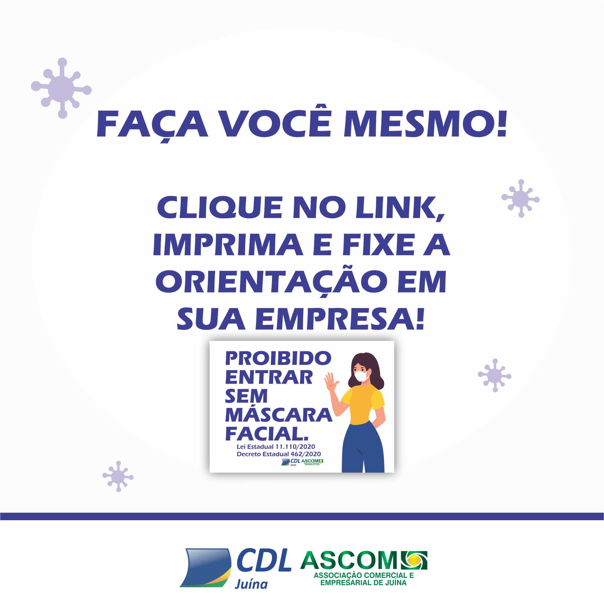 Para auxiliar as empresas na orientação de seus clientes, disponibilizamos em nosso site um link com o arquivo da informação, para que você possa fazer o Download e a impressão ai mesmo em sua empresa, ou se preferir, pode vir retirar na CDL JUINA - ASCOM.