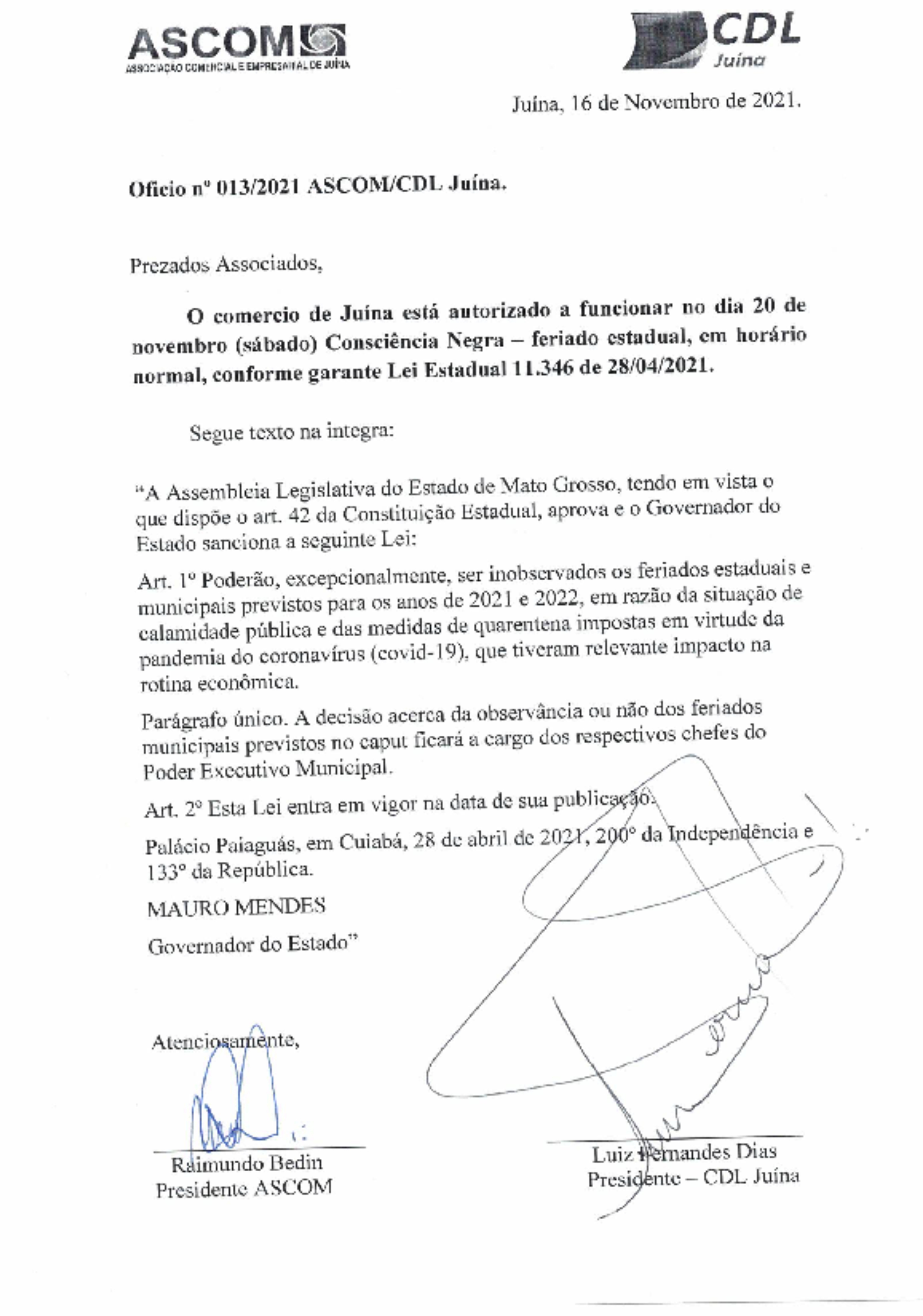 Vale lembrar que está em tramitação na Assembleia Legislativa de Mato Grosso um Projeto de Lei (PL) que propõe acabar com feriado do Dia da Consciência Negra no Estado, em definitivo, transformando a data em ponto facultativo. A iniciativa é do deputado Gilberto Cattani e tem total apoio dos empresários de Mato Grosso.