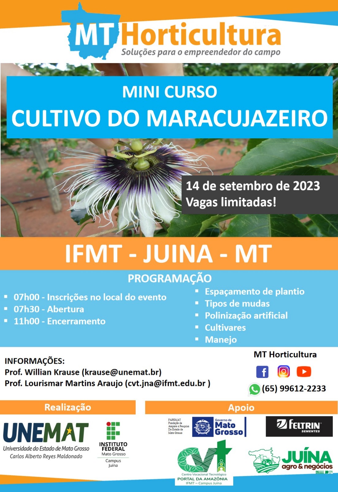 Quinta 14/09: 07:30h – Dia de Campo IFMT - Minicurso "Cultivo do Maracujazeiro" Local: Anfiteatro do IFMT Campus Juína.