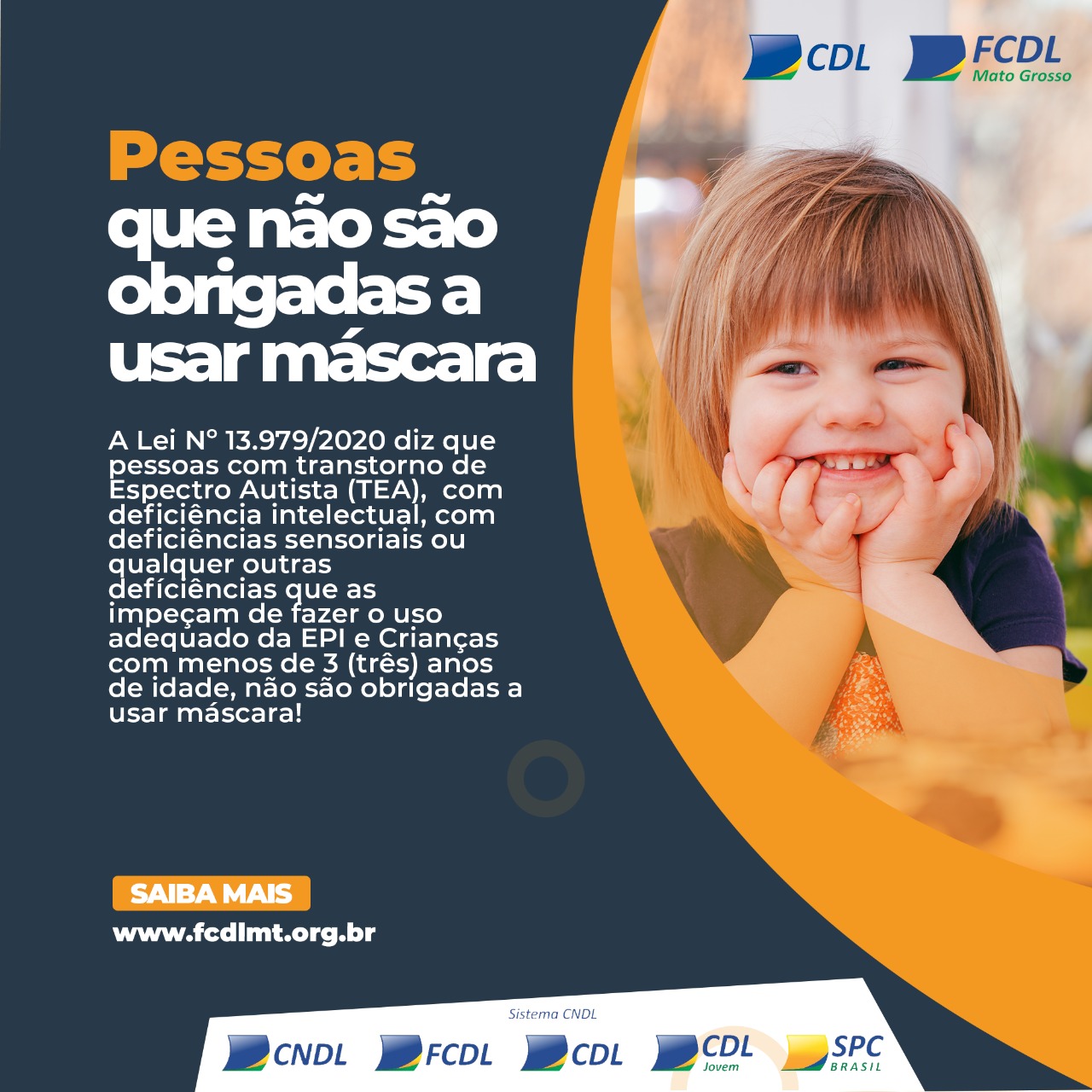 Citando inúmeros dispositivos constitucionais e legais que protegem pessoas com enfermidades dessa natureza, o MP destacou a Lei Federal nº 13.979/2020 que, em seu parágrafo 7º, artigo 3º A, dispensa a obrigatoriedade do uso de máscara de proteção individual, no caso de pessoas com aspecto autista (TEA), com deficiência intelectual, com deficiências sensoriais ou com quaisquer outras deficiências que as impeçam de fazer o uso adequado do equipamento de proteção, conforme declaração médica, que poderá ser obtida por meio digital, bem como no caso de crianças menores de 3 anos de idade.