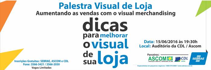 O Sebrae em parceria com ASCOM e CDL, apresenta a palestra “Visual de Loja – Aumentando as vendas com o visual merchandising”.